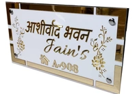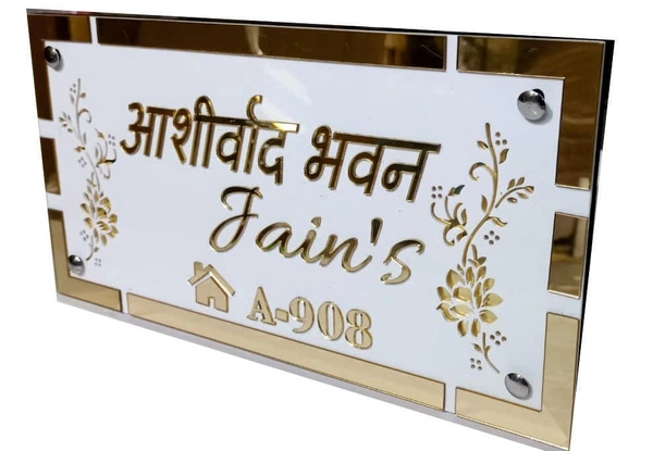 Name Plate Signage For Flat/Home Laser Cut Acrylic Letter On Gold And White 12 X 6 Inch